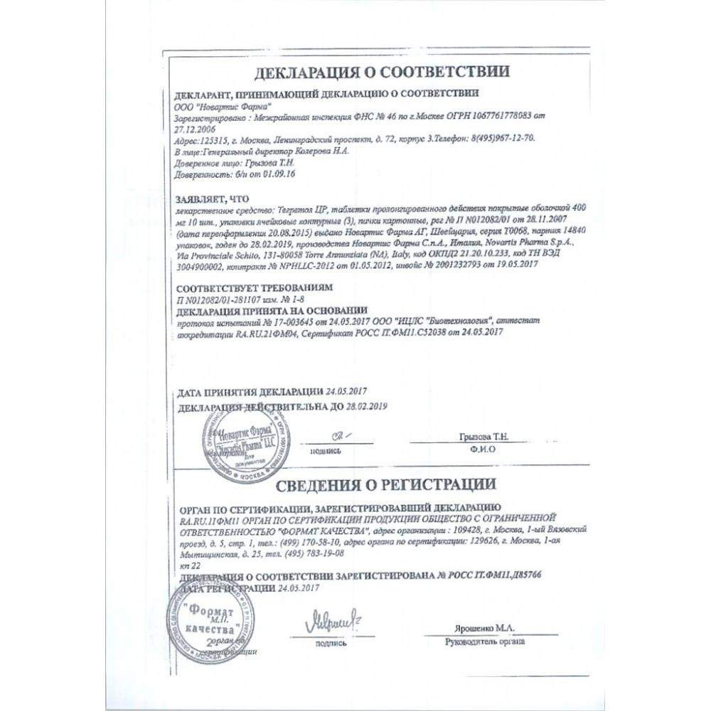 Фото Тегретол ЦР (CR) 400мг таблетки №30